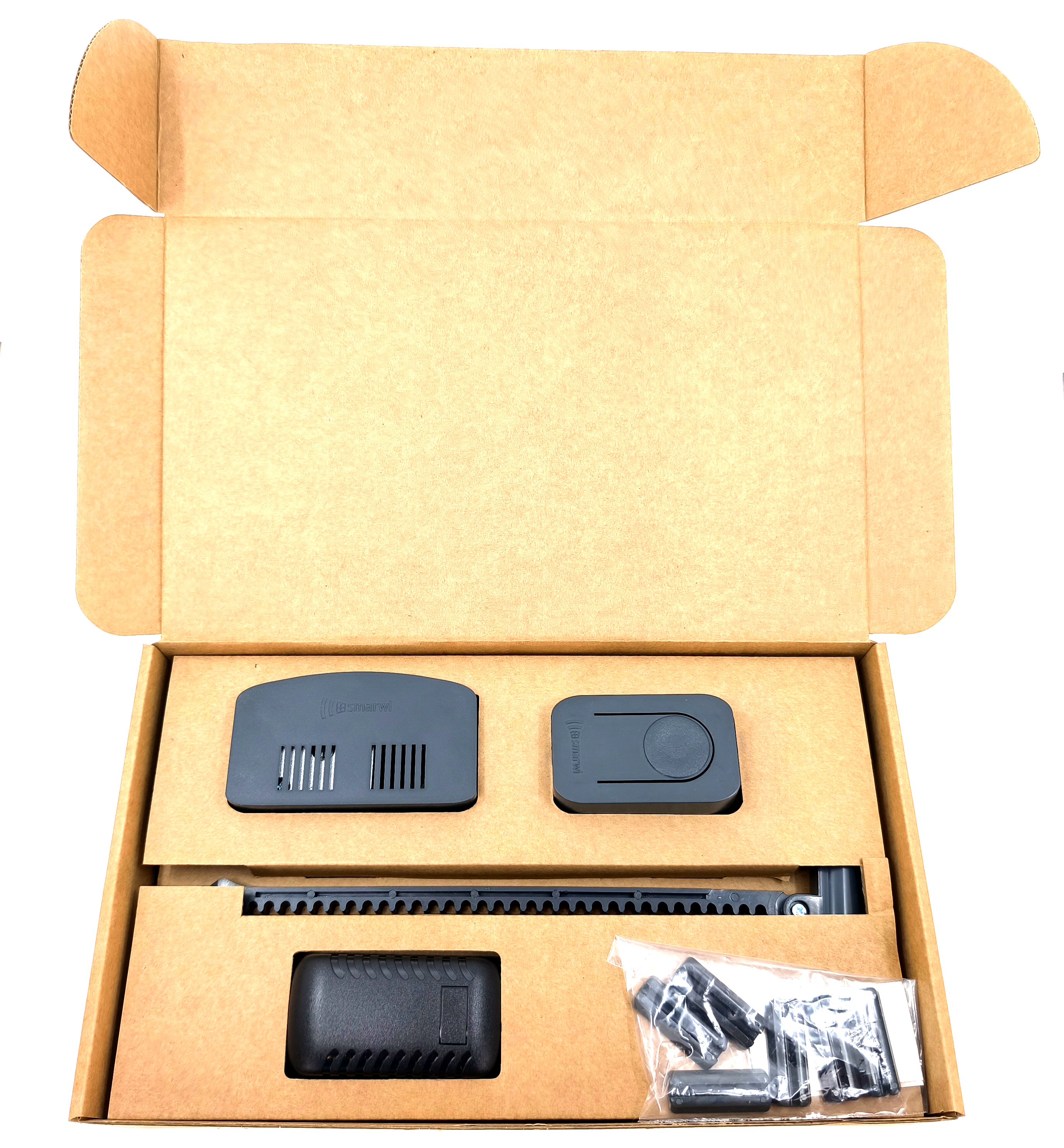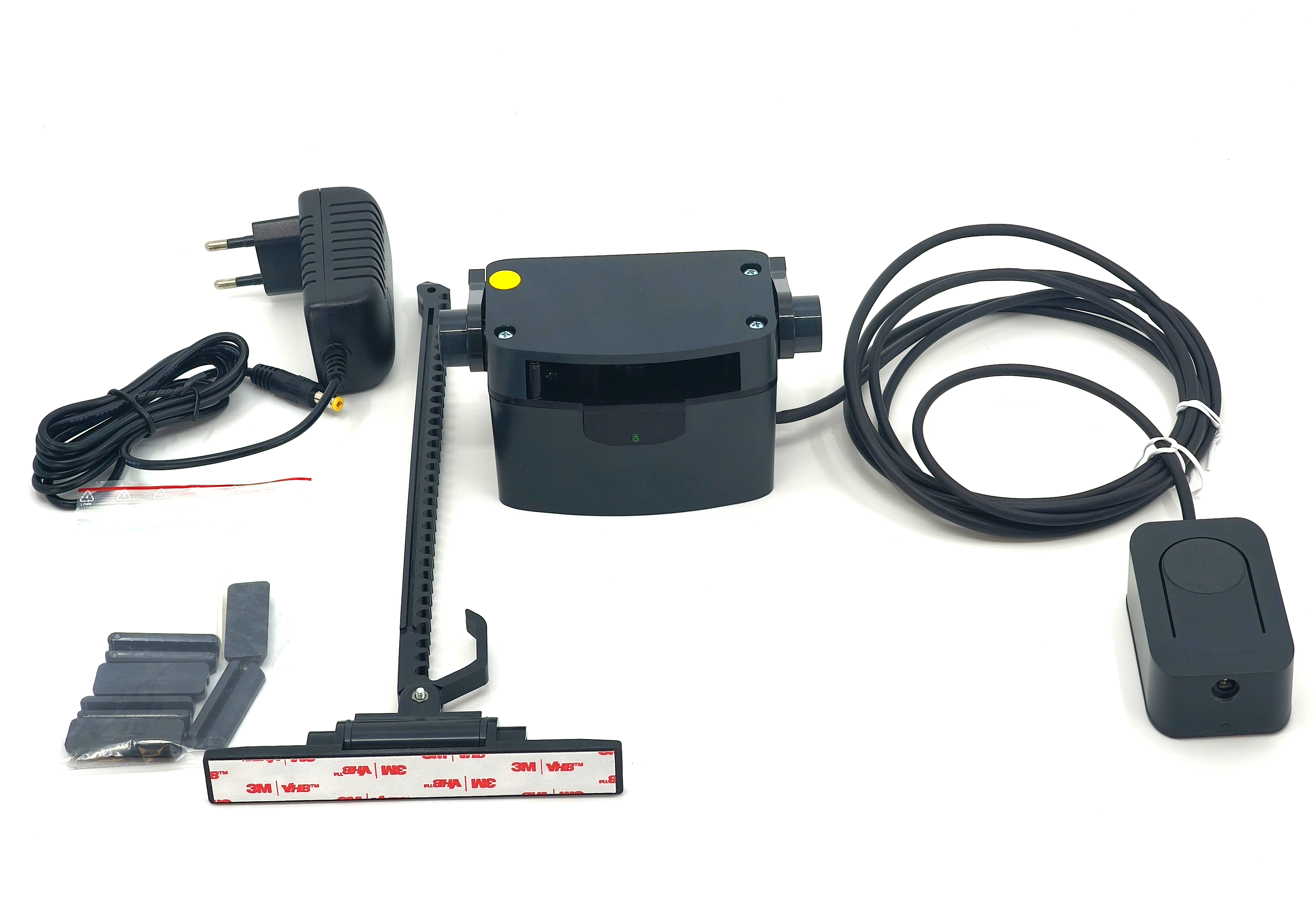 - SMARWI v antracitové barvě (tělo přístroje s držákem vybaveným lepicí páskou) a bezpečnostní ovládací box BoB vybavený lepicí páskou a připojený kabelem